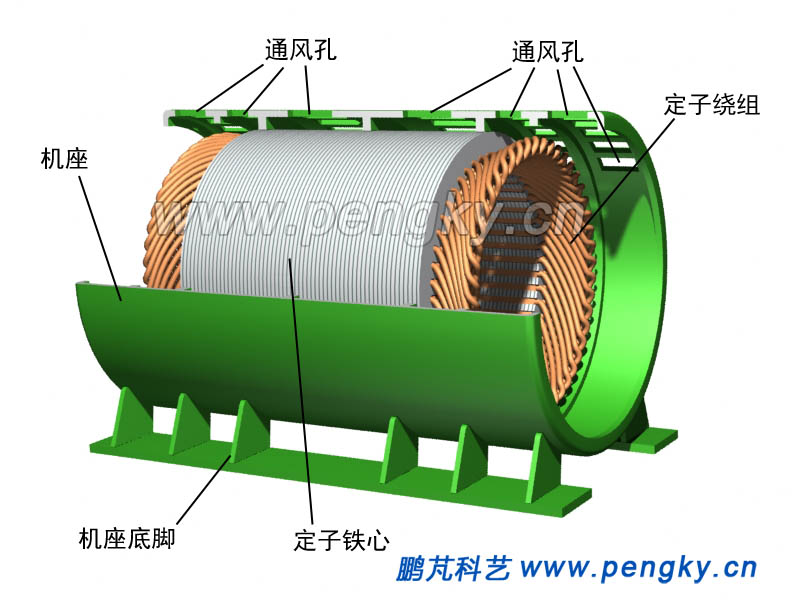 | 定子固定在機座內(nèi),機座外殼上有通風(fēng)孔,便于電機散熱,見圖3。 |