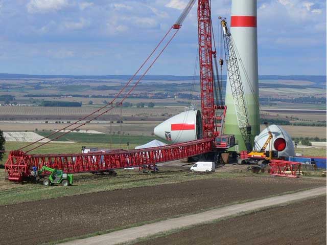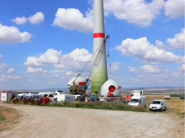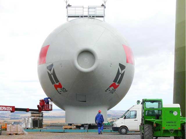 據(jù)報(bào)道目前最大的風(fēng)力發(fā)電機(jī)為Enercon公司E-126直驅(qū)式風(fēng)力發(fā)電機(jī),功率為7MW,為使科技愛(ài)好者能一睹這當(dāng)今最大的風(fēng)力發(fā)電機(jī)的風(fēng)采,從網(wǎng)上找到一組Enercon公司E-112直驅(qū)式風(fēng)力機(jī)的吊裝圖,E-112風(fēng)力機(jī)功率為6MW,雖不是最大的E-126,但E-126僅是E-112的改進(jìn)型,外觀結(jié)構(gòu)一樣。該組照片是2006年9月份拍攝的。
