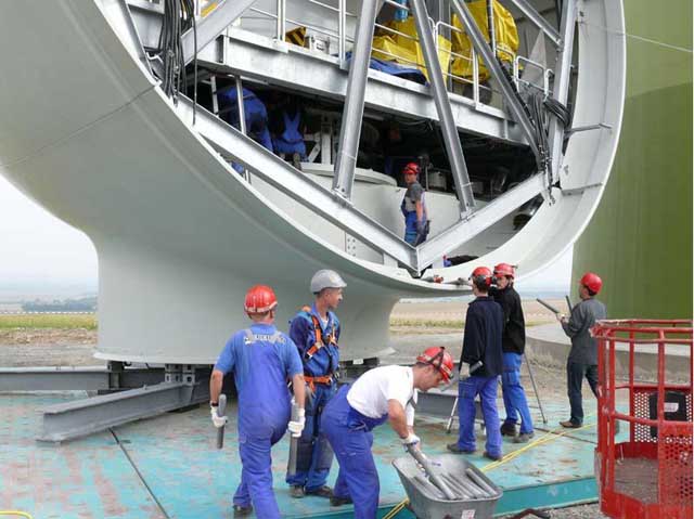 風(fēng)力機(jī)的塔架是20-30個(gè)工人用了8個(gè)月建成的