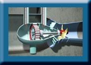 | 斜擊式水輪機的工作原理是從水輪機噴管射出高速水流,斜向沖擊水輪機的輪葉,通過水流的動能使水輪機旋轉(zhuǎn)做功。有演示動畫。 |